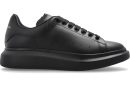 Baskets à semelle transparente en cuir Alexander McQueen avec logo imprimé à l’arrière, languette à logo, bout rond et laçage sur le devant. Couleur : noir.