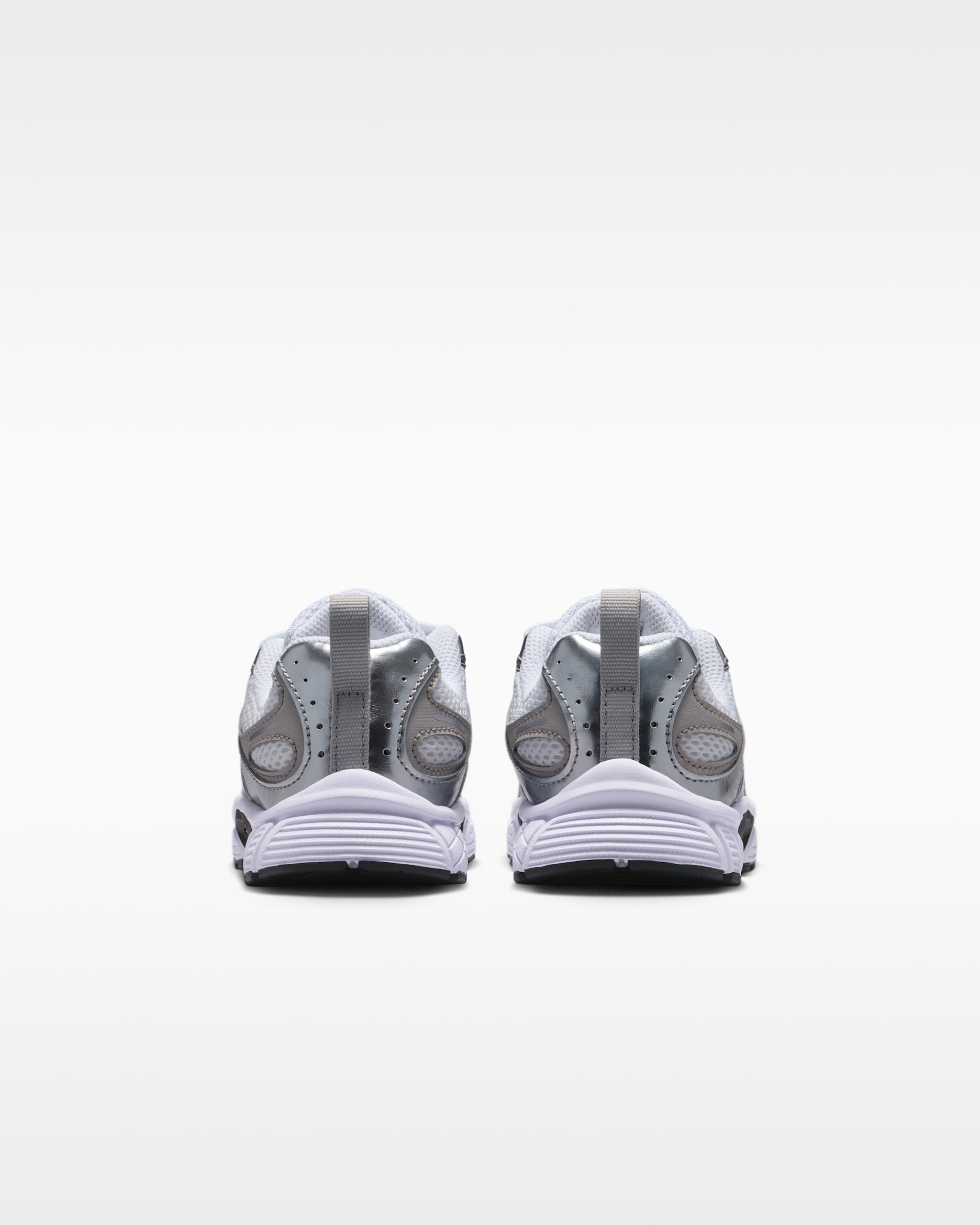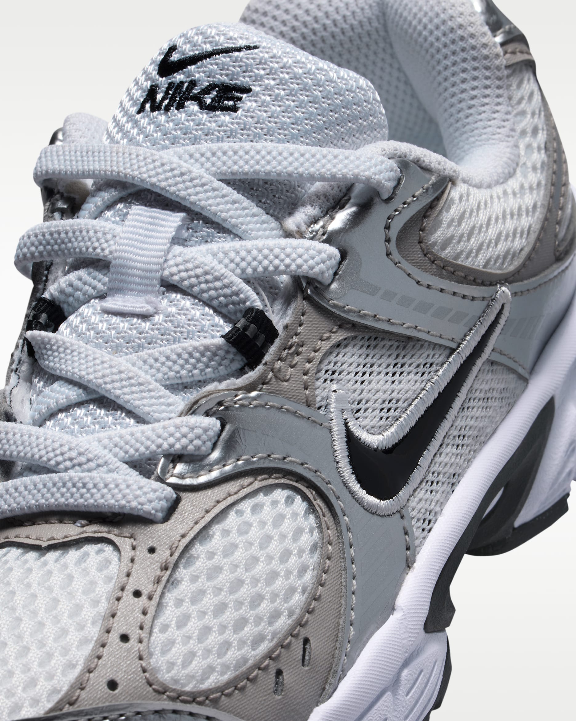 women’s lifestyle sneaker inspired by early 2000s running, specifically the Zoom Vomero 5, featuring a chunky, cushioned heel, metallic overlays, and breathable mesh. It offers modern comfort through a thick Cushlon foam midsole and a 2000s-inspired, « dad shoe » aesthetic, making it ideal for casual wear